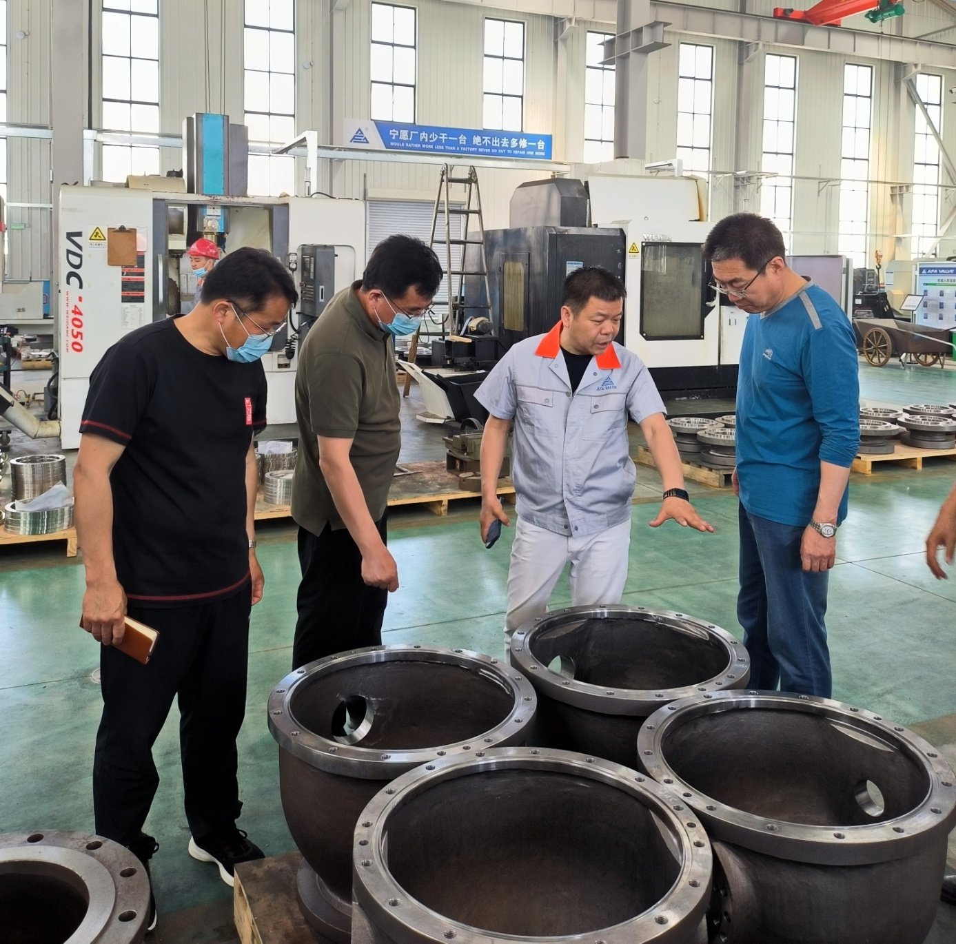 5月28日上午,青岛西海岸交通商务区工委书记管绍波一行来到jinnianhui今年会流体控制有限公司检查指导工作,管绍波书记深入公司生产车间、办公楼、员工公寓、食堂等场所,详细了解企业生产经营、疫情防控和员工生活等各方面情况。